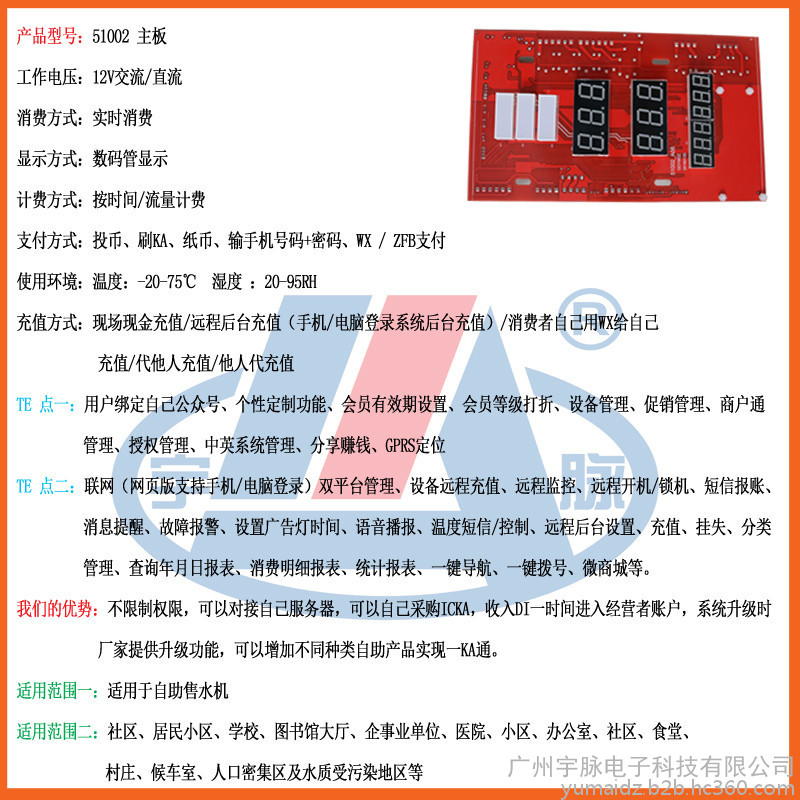 廣州宇脈電子自助售水機(jī)主控板:
