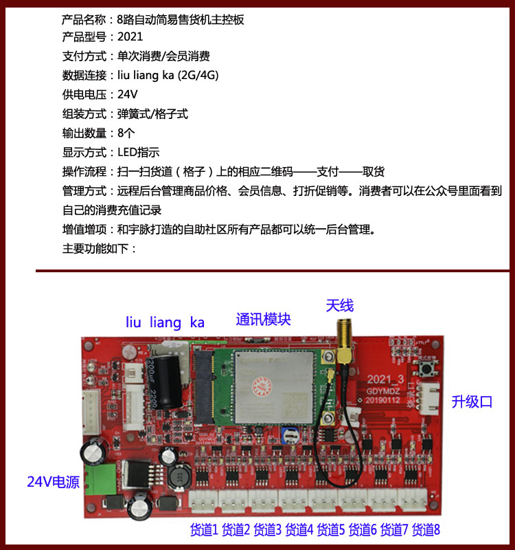 8、我們的主板后期可以增值增項,比如你想再做售水機、洗衣液售賣機、豆?jié){售賣機、充電樁、充電站等,都可以統(tǒng)一后臺管理,你拿著手機,看到你所有機器的參數(shù)是否合理、每時每刻的收入和消費情況。