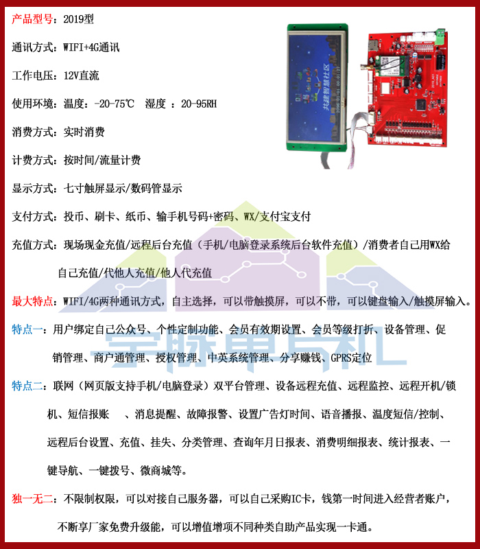 宇脈新品研發(fā)——自助洗衣液機(jī)主板,2019型,數(shù)碼管/七寸屏兩種顯示板,自主選擇,自由設(shè)置參數(shù),權(quán)限自由,主控設(shè)備自助研發(fā)生產(chǎn),多功能自助設(shè)備,支持定制開發(fā),主控設(shè)備不定期的升級,享受廠家免費(fèi)升級功能,宇脈自助設(shè)備支持一卡通,統(tǒng)一后臺(tái)管理。自助售奶機(jī)主板功能看圖片了解,歡迎來電咨詢:18520500709/400-1898-020